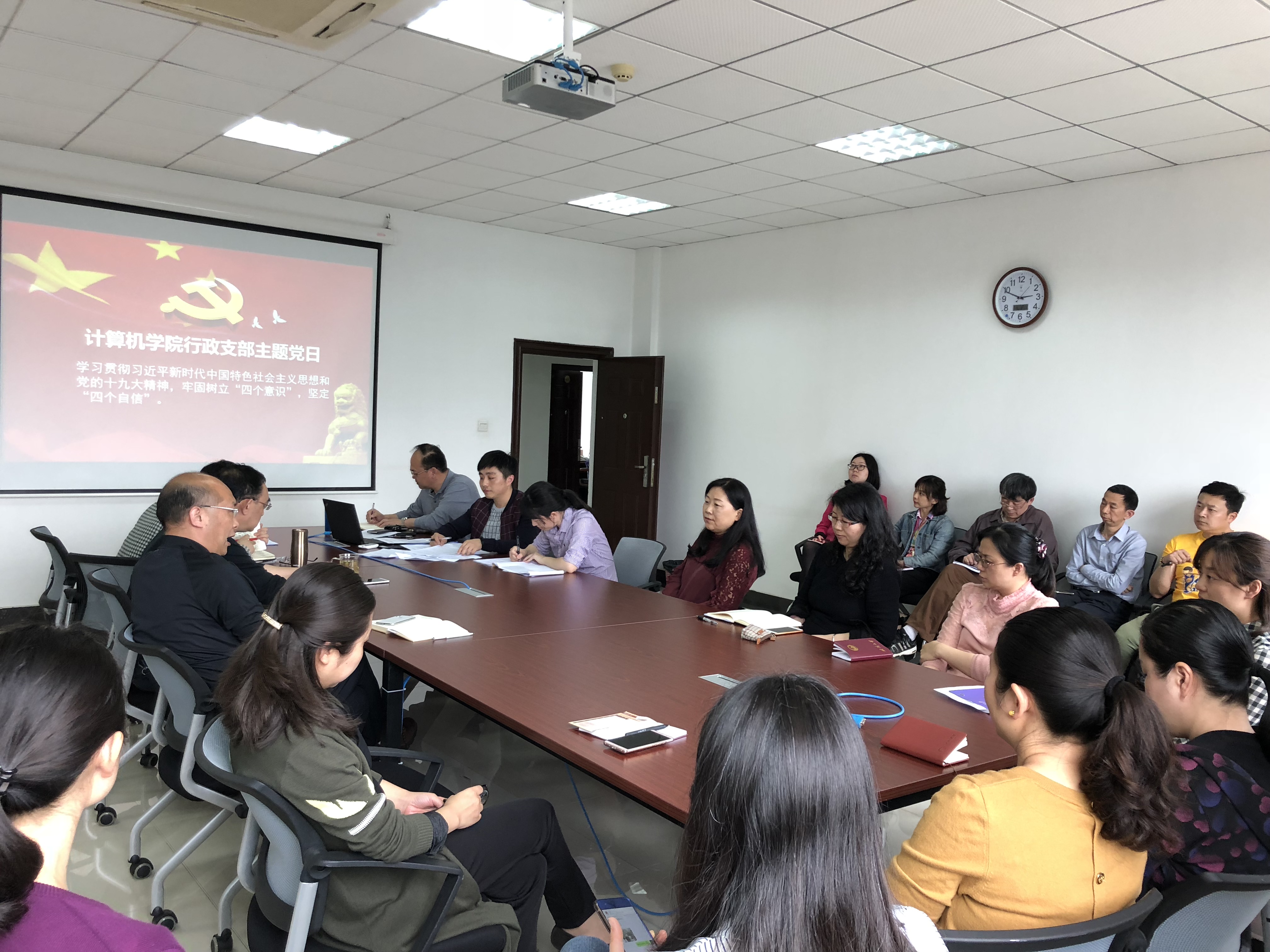 按照学院2018年政治理论学习方案,学院行政党支部于4月12日下午召开了以学习领会党的十九届三中全会精神为主题的支部主题党日活动。行政党支部全体党员参加活动,支部书记陈畅主持活动。