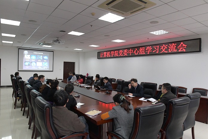 2017年11月13日下午,我院党委中心组举行第四次集中学习交流会,会议由沃闻达书记主持,胡瑞敏院长做“计算机学科建设现状与思考”主题报告,学院领导班子全体成员、党委委员、教工党支部书记及内设机构办公室主任等参加了集中学习。