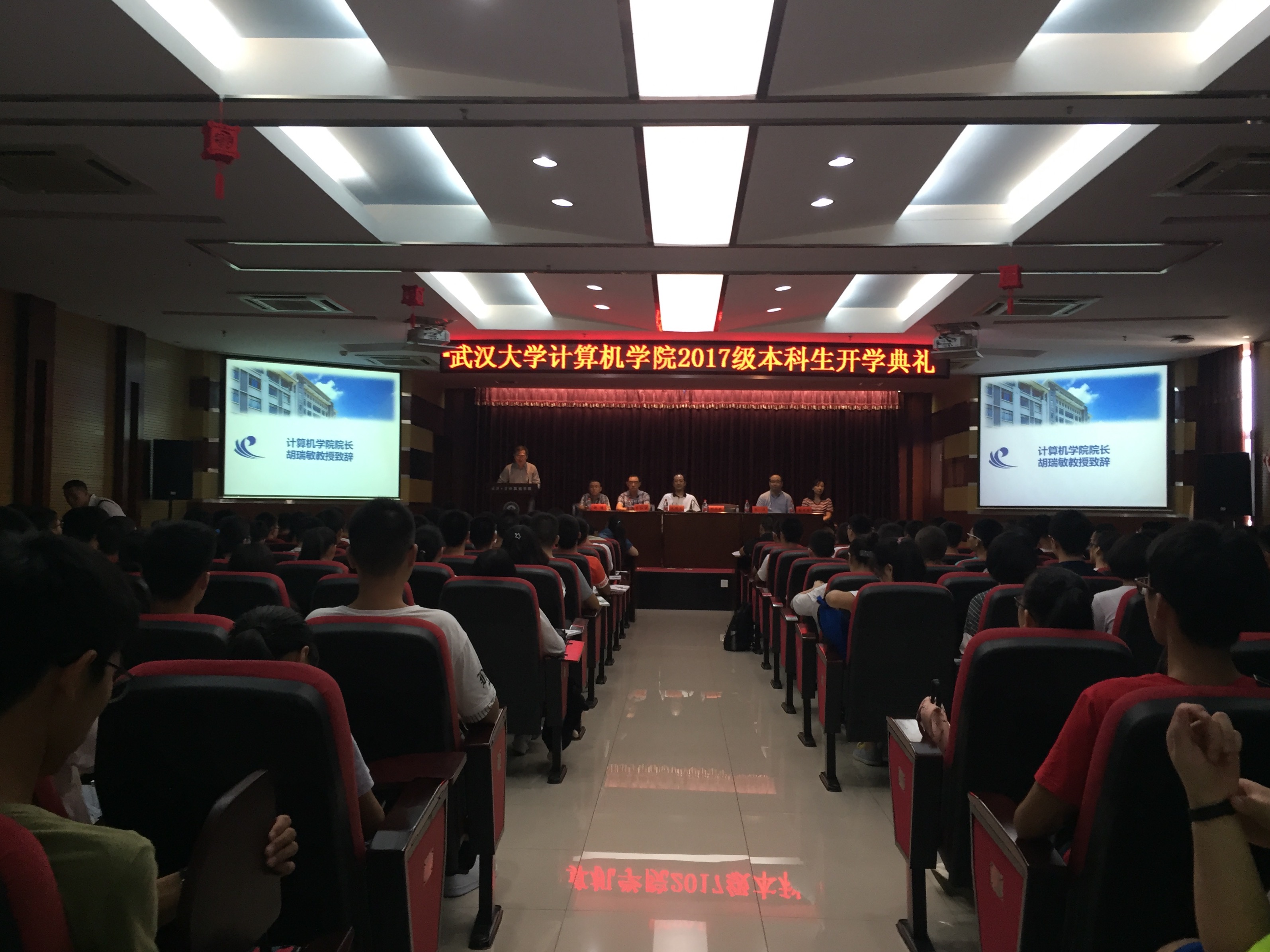 院长胡瑞敏教授对新生发表讲话,他代表学院对401名新生的到来表示欢迎。他希望学生充分利用好四年的时间,学好专业知识,巩固专业基础,努力拓宽知识面,用扎实的知识武装自己,在求知探索的过程中不要松懈,同时多参加科研实践活动,知识心智全方面发展,成为一名优秀的武大计科人,在珞珈山下开启了人生新篇章。