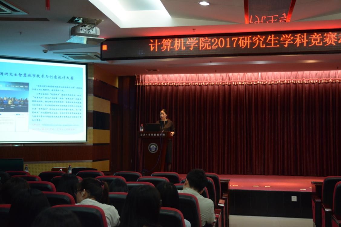 胡书记首先强调了学科竞赛的重要意义,回顾了近三年来我院研究生在各类学科竞赛中取得的成绩,并对全国研究生创新实践系列赛事和“互联网+”大赛、挑战杯大赛做了详细介绍。她指出,2017年学校和学院将采取各类激励政策继续鼓励和支持研究生参加国内、外重要学科竞赛,尤其是在学分获得、科研成果认定、物质奖励和比赛资助等方面相继出台了系列文件。最后,胡书记重点介绍了2017年我院在学科竞赛促进工作中的新举措——学科竞赛立项制,通过项目申报、立项审批、给予资助的方式引导和鼓励研究生积极报名参与各类学科竞赛。