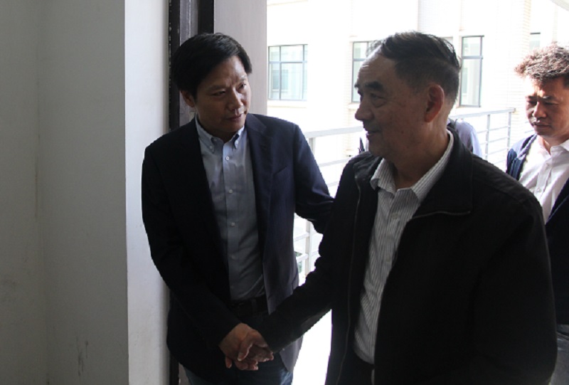 杰出校友”雷军和他的团队——小米科技、金山软件、顺为资本的20多位高管来到大会现场,现场掌声雷动,彻底点燃现场学子热情。雷军得知正在召开的是“互联网+”大学生创新创业大赛推进专题辅导会时,欣然拿起话筒作了简短动员讲话:“30年前,我和你们一样初入校园,憧憬着美好的未来;得知你们连续两届获得‘互联网+’大赛金奖,希望你们再接再厉,再获金奖。未来是属于你们的,相信你们一定会比我做得更大更强”。讲话结束后,雷军还与当年读书时的班主任张德向老师进行了亲切交谈。