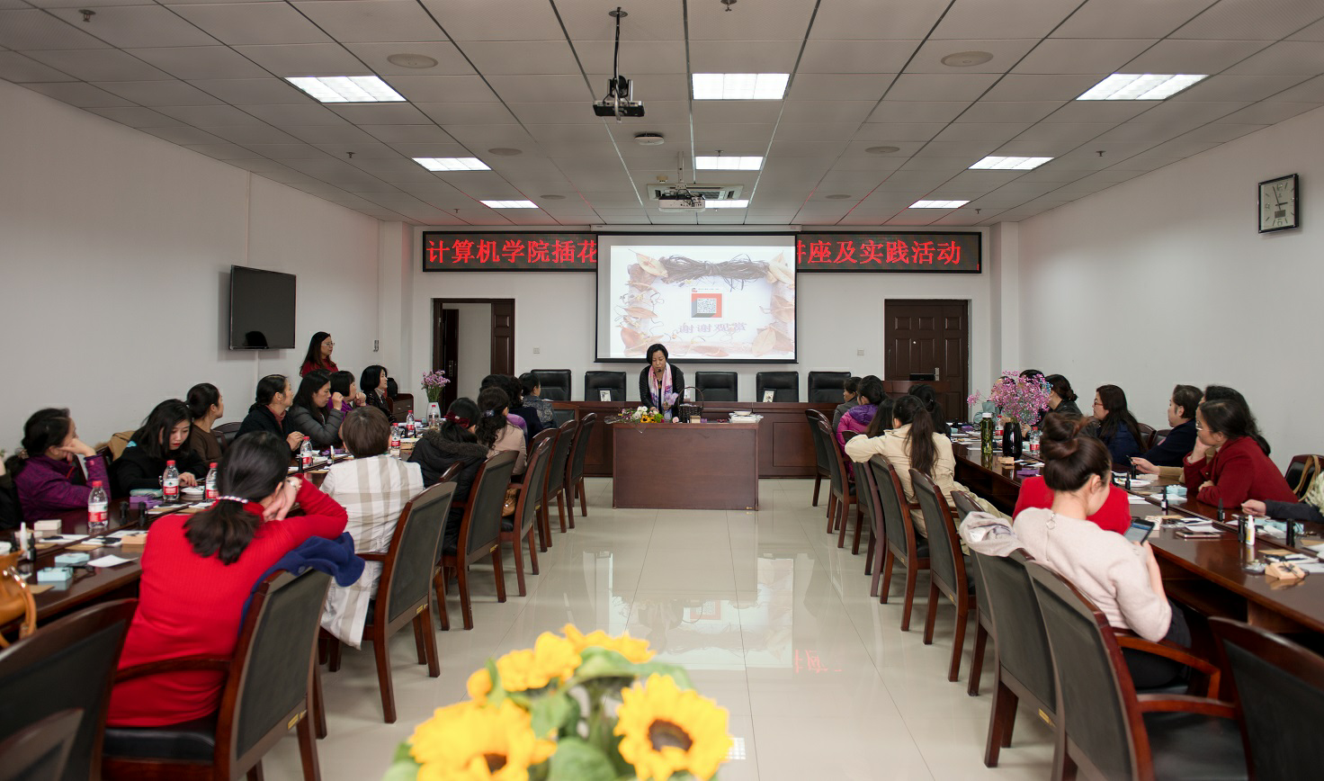 2017年3月9日,为庆祝“三·八”国际劳动妇女节,院工会组织学院女教工开展“女教工插花、压花艺术修养讲座及实践活动”。活动由院工会主席、院党委副书记胡俊英主持,院党委书记沃闻达亲临活动现场并为女教工送来节日的祝福!武汉蝶恋花花艺工作坊创始人冯莉女士担任活动主讲嘉宾。