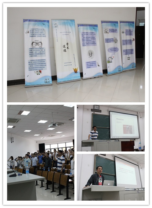 彭智勇教授首先向各位同学解读了学术不端、学术规范、著作权等关键词,重点介绍了学术不端行为的界定以及典型行为,并通过北京大学“于艳茹学术不端事件”进一步加深了同学们对学术不端行为的认识。李宗鹏教授向与会的同学们介绍了加拿大卡尔加里大学的科研要求和科研情况,并对学术不端中的“抄袭”行为作了详细的论述。最后,全体同学在研究生会学术部部长何薇同学的带领下进行学术诚信宣誓。