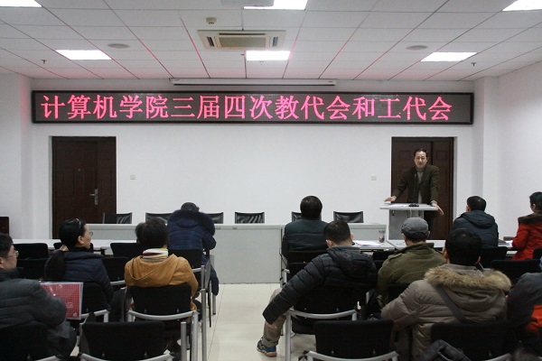 院长胡瑞敏代表院领导班子作2015年工作报告,报告总结了三届三次教代会以来学院各项工作所取得的成绩:学院内部管理更加规范,行政人员工作作风进一步加强,领导干部纪律意识更加稳固;学院高层次人才新增一名国家级青年人才、获批两项湖北省科技进步一等奖、新增网络空间安全一级学科博士授权点、获批23项国家自然科学基金,获批率创下新高,高水平论文延续良好态势,继续增长, ESI高被引论文数量创下新高,Incites数据库显示十年被引次数大幅度增加。简要回顾了2015年的工作举措,分析了学院存在的短板,提出了2016年的主要工作目标和任务,第一认真做好软件工程国家重点实验室评估的各项准备工作;第二,制定和实施“ESI攀登计划”,争取在2017年之前使计算机学科成为进入ESI前1%的学科;第三,全力做好国家本科教学审核评估各项准备工作,迎接评估组专家检查;第四,积极申报国家网络空间安全人才培养基地,做好网络空间安全专业本硕连读培养方案设计;第五,深化本科教学体制改革。深入推进课程体系、教师遴选、教学评价、机构设置等改革;第六,进一步加强研究生招生宣传工作,吸引更多的高水平大学学生来我院硕博连读;第七,积极开展对外交流工作,引导学生积极参与国际交流活动,促进更多的优秀毕生到国外一流大学继续深造;第八,做好“计算机科学与技术”和“软件工程”两个一级学科的评估准备工作,迎接教育部新一轮学科评估。同时做好新增的“网络空间安全”一级学科建设工作;第九,国家科技三大奖有收获;第十,积极推进人事制度改革工作,全面实施全员聘任制,争取在高水平人才引进上有新的突破;在党建工作中,进一步落实全面从严治党,抓好党风廉政建设、思想政治教育,围绕“三严三实”专题教育查摆出的问题,积极做好整改,推进长效机制建设;积极做好继续教学工作与拓展办学等。副院长彭正明代表院行政作财务工作报告,对2015年院级财力进行了深入分析,对2016年的财务工作提出了具体的思路,并就《足球欧洲杯