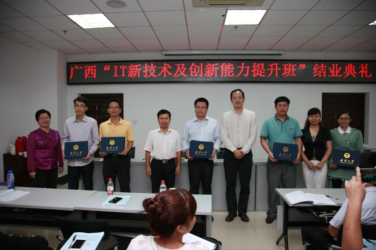 10月22日下午,我院为广西壮族自治区领导干部开设的“IT新技术及创新能力提升班”在学院B403会议室举行了结业典礼。学院党委书记沃闻达、广西壮族自治区委组织部部务会成员、远程办主任王波、处长苏爱民出席结业典礼。