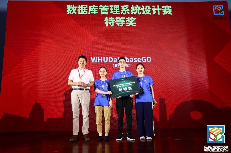 数据库管理系统设计赛我院共有4支参赛队伍入围决赛,通过10天的性能测试比拼,WHUDatabaseGo队以性能的绝对优势从382支参赛队(共998名参赛队员)中脱颖而出,最终斩获数据库管理系统设计赛唯一的特等奖,其它3队分获两项二等奖和一项三等奖。