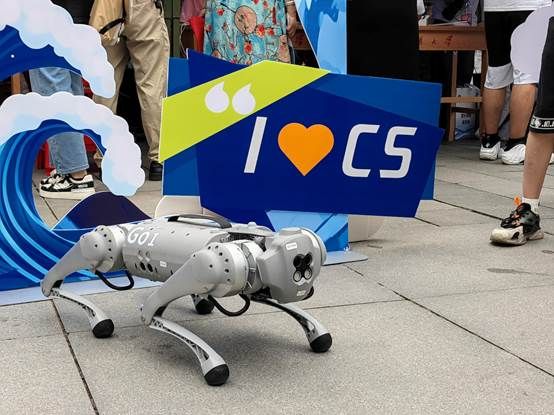 “我们学院的机器狗太酷了,希望以后我也可以参与设计这种产品”面对迎新现场展示的实验室机器狗,来自弘毅班的周炜同学在采访镜头前吐露心声,表达着对未来学习科研的期待。