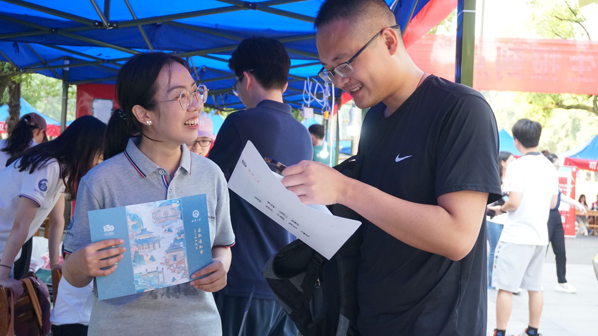 早上7点,我院2023级研究生迎新报到工作在信息学部图书馆门前的报道点有条不紊地展开。在志愿者们的指引下,新生们准备好录取通知书和其他身份证明。志愿者仔细核验每位新生的报到材料,发放校园卡和新生纪念品大礼包,为新生和家长提供细致温暖的服务。