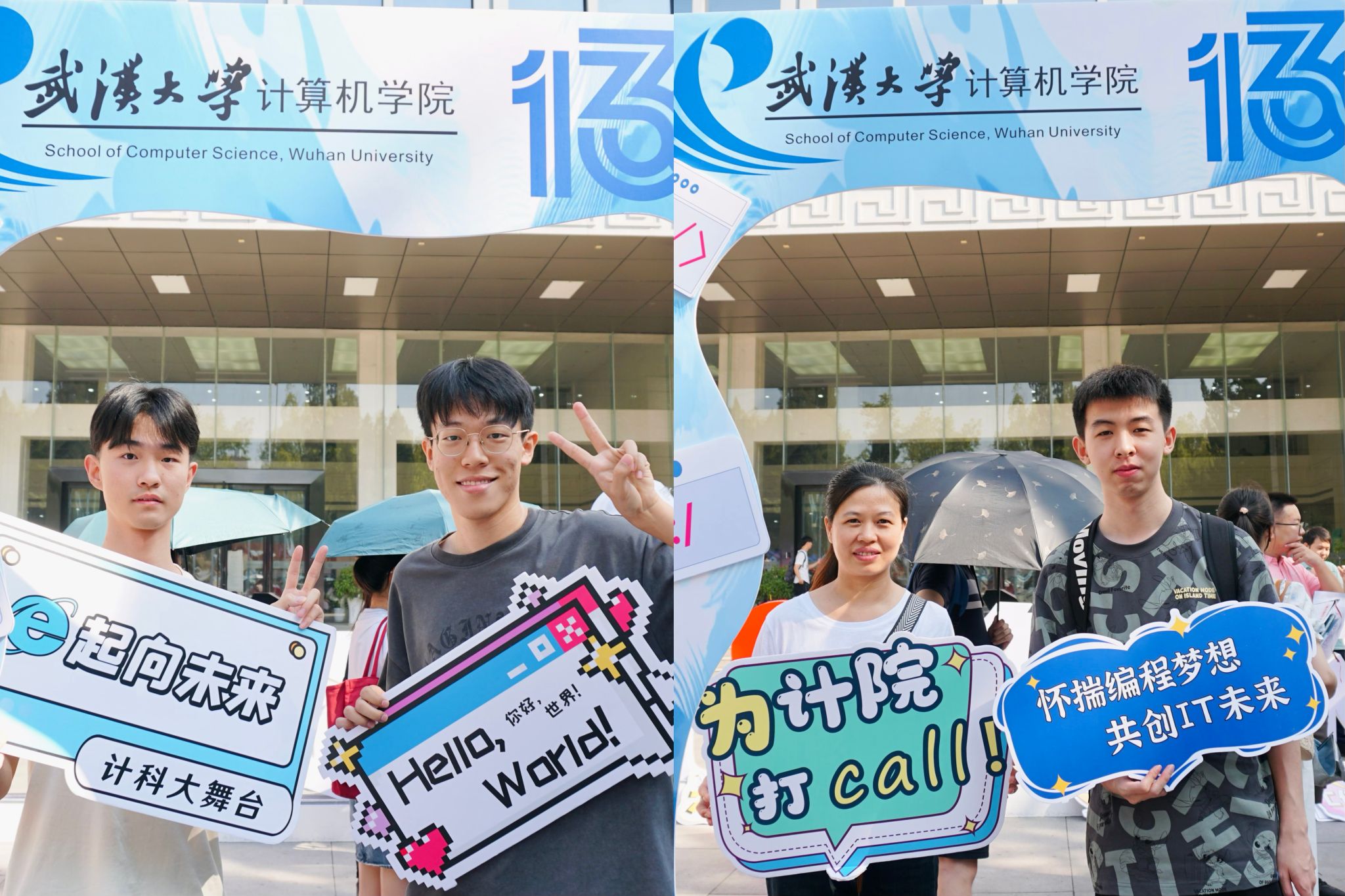 “三二一,开学快乐——”报到完成后,不少新生和家长纷纷举起“e起向未来,计科大舞台”“为计院打call”“怀揣编程梦想,共创IT未来”等手牌,来到学院搭建的合影框前下打卡留念。研究生辅导员还为同学们拍摄了拍立得留作入学纪念。