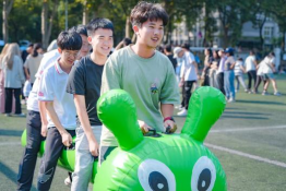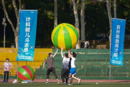 为鼓励师生全员参与,展现各年级、各班等集体内部团结协作力量,除田径比赛外,现场还设置了集体项目,包括班级男女混合50米接力、拔河、一圈到底,以及趣味项目四人五足、充气毛毛虫竞速、过河拆桥等,各年级积极报名,共270只队伍、1100余人次参与。计科学子积极参与趣味体能挑战,洋溢着饱满的活力,不仅锻炼了的团队协作能力,也为本次院运会增添了一抹青春绚丽的色彩。