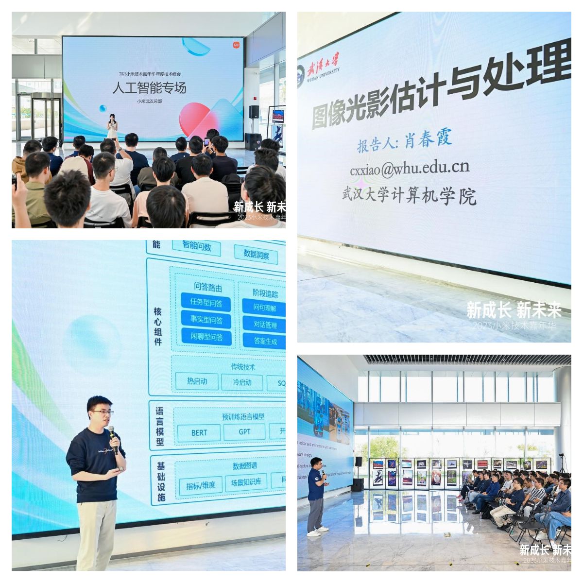 师生们应约抵达小米武汉总部。学院江佳伟副院长、肖春霞教授和小米公司的七位技术专家从相机背后的AI算法、自动驾驶感知技术到大模型的思考和实践等课题,分享了最新的科研成果和技术趋势,并探讨了计算机领域的前沿问题,展示了AI从技术原理到实践应用,让同学们切实体会到了人工智能的独特魅力和巨大潜力。