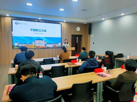 2023年11月13日上午,学院于B404召开干部宣布大会。学校党委组织部副部长谌启航、学院领导班子成员、学院新任党委副书记金娟出席会议,学院各系、中心、办公室负责人,全体本科生辅导员参加了会议,会议由学院院长杜博主持。