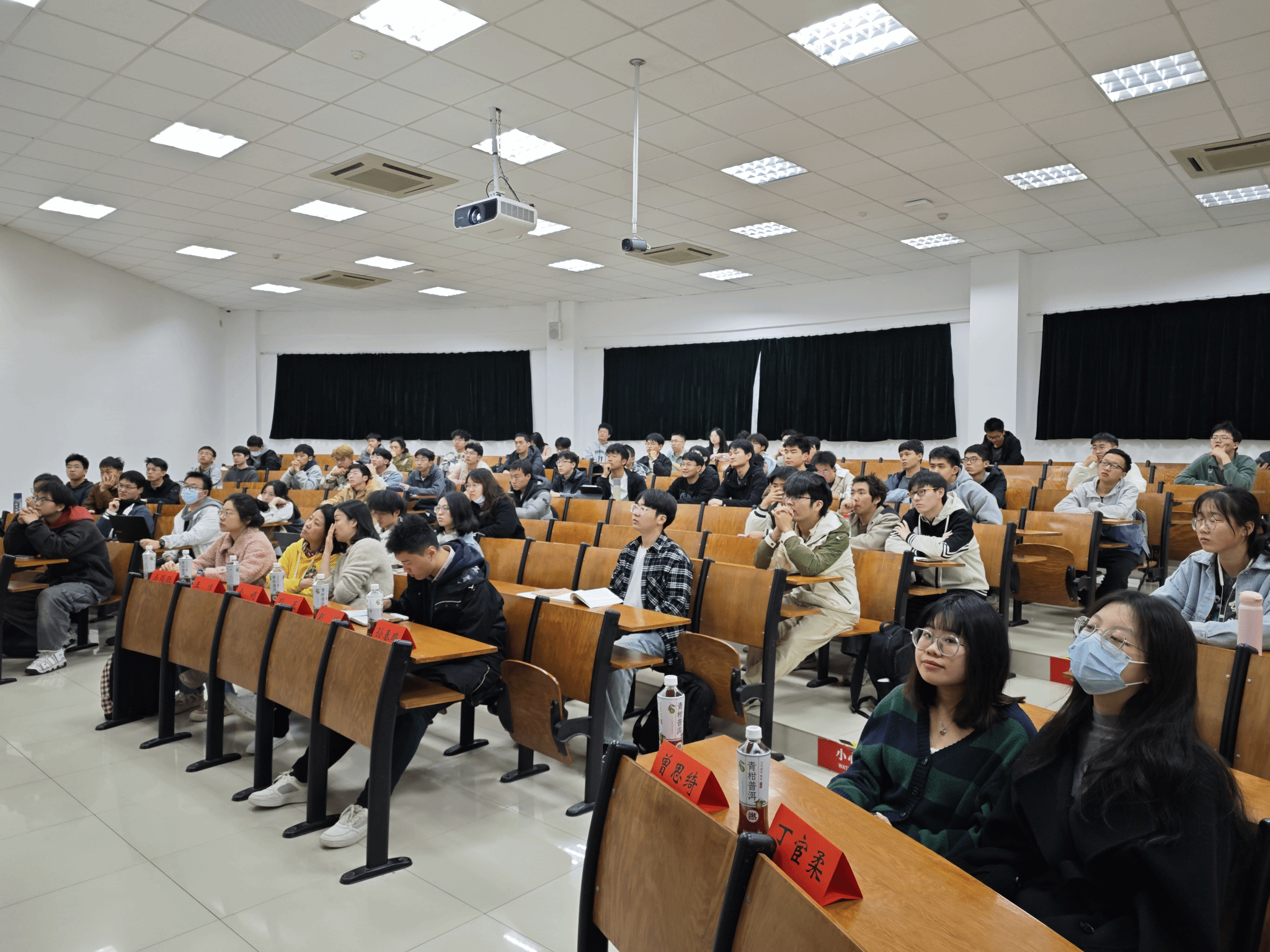 教学副院长彭蓉,党委副书记金娟,团委书记、2023级本科生辅导员赵玥,2023级辅导员孙春鹏,本科教学秘书王恒,2023级本科生兼职辅导员马雨聪和70名转专业同学参会。孙春鹏老师主持会议。
