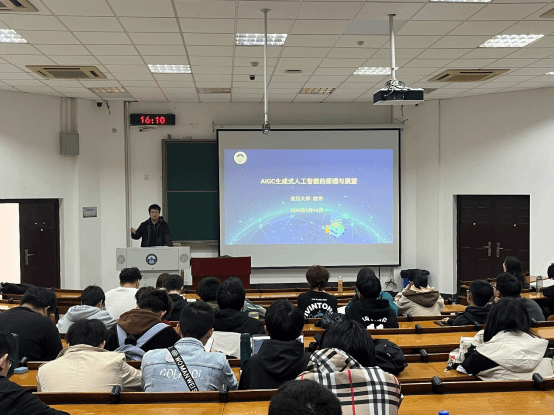 102教室举行,学院武宇教授为2023级本科生带来以“AIGC生成式人工智能的原理与展望”为主题的讲座。学院人工智能系主任彭敏教授、余伟副教授出席本次读书会。