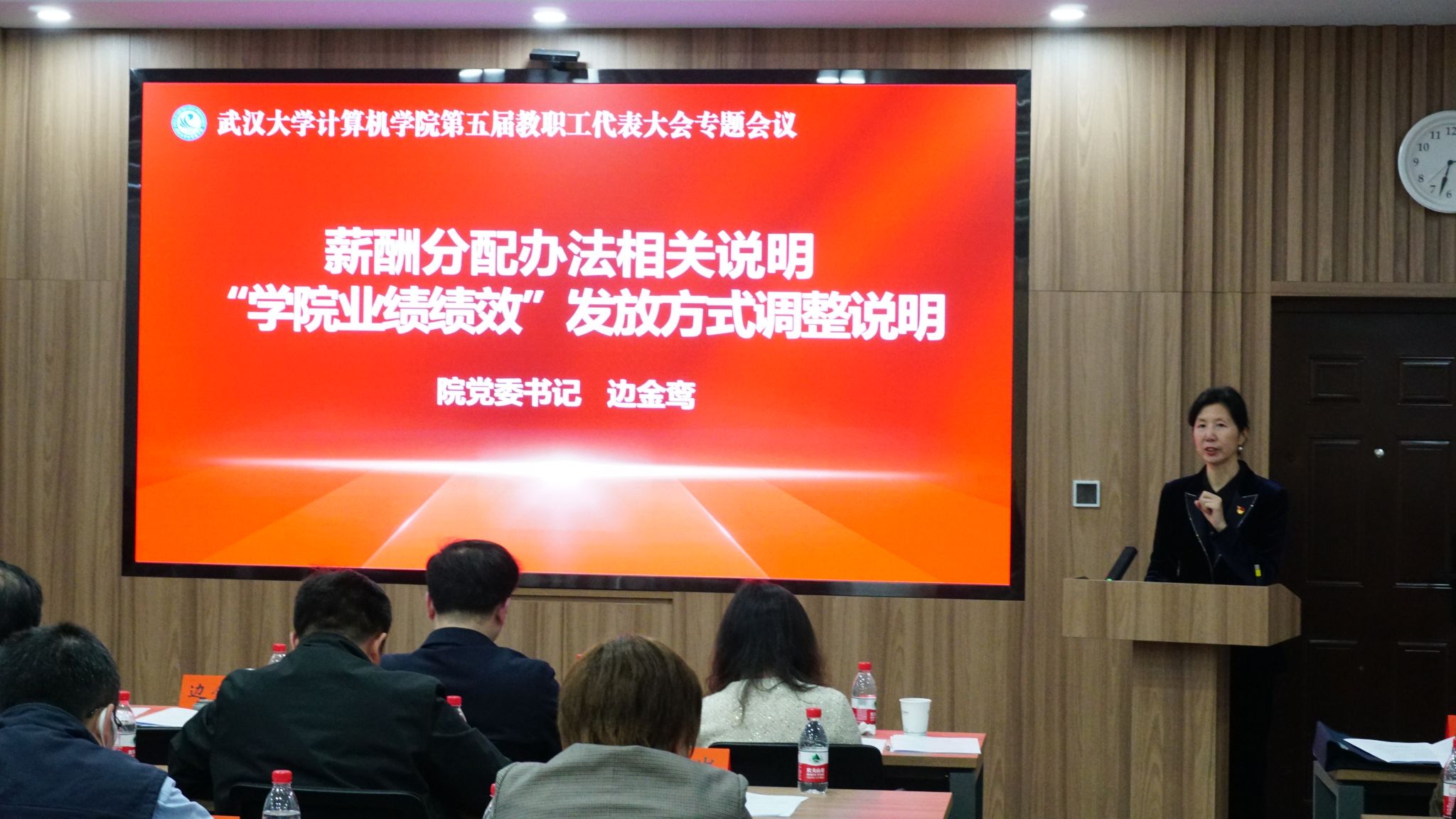 院党委书记边金鸾作薪酬分配办法相关说明和学院业绩绩效发放方式调整说明。