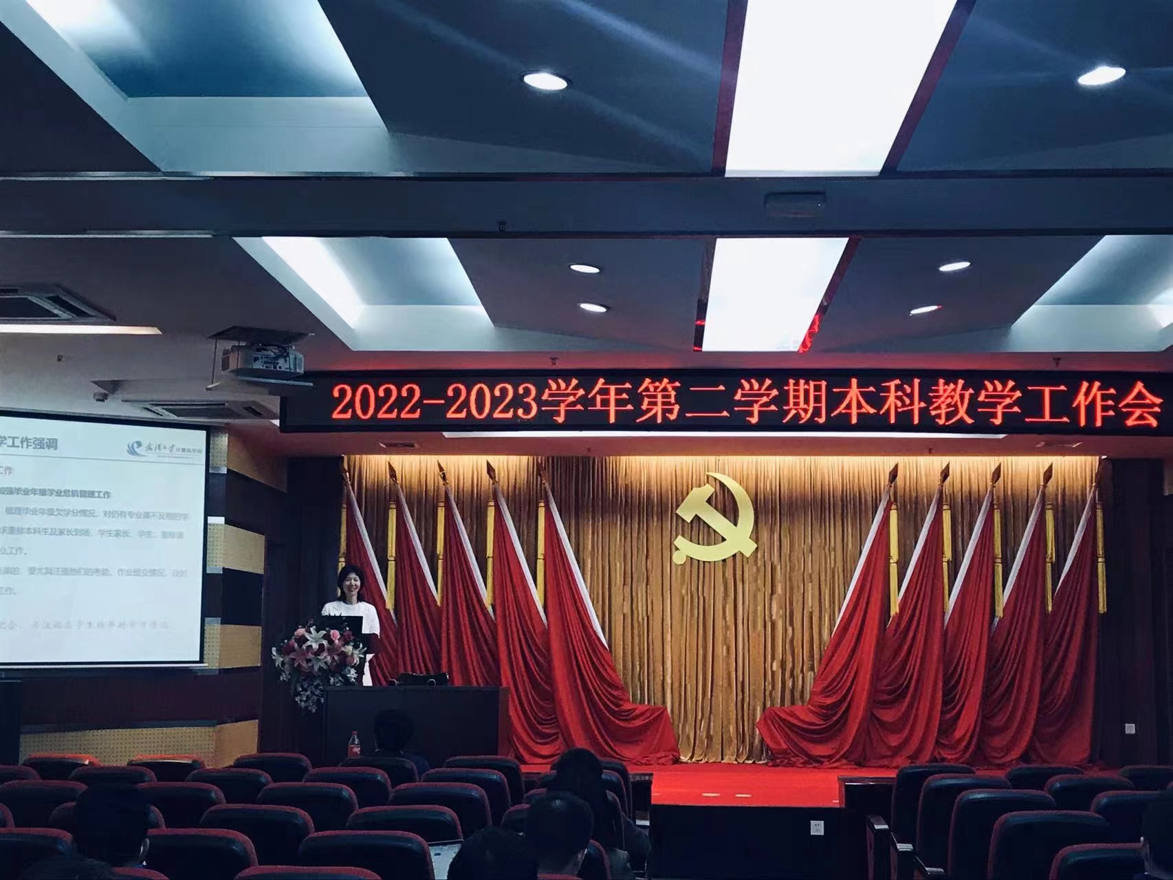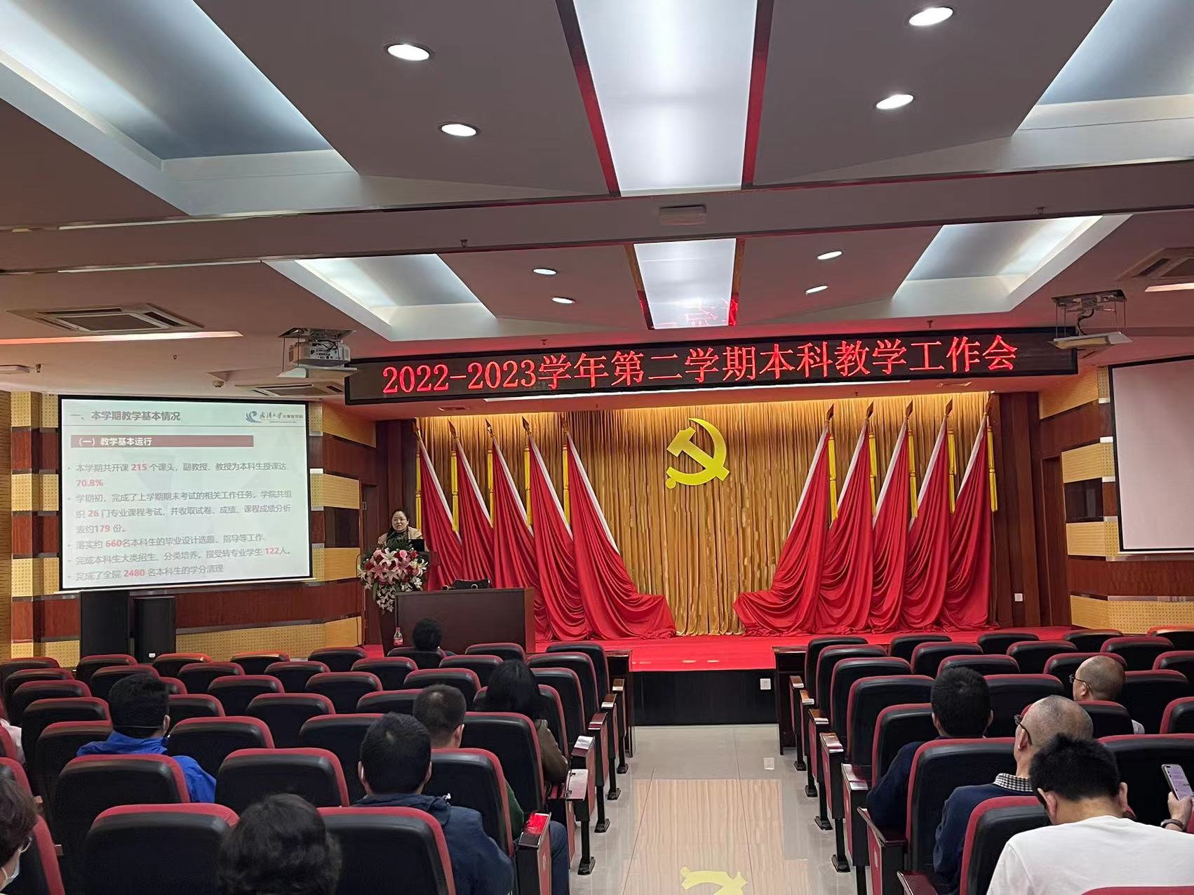 彭蓉副院长首先介绍了本学期本科教学的基本情况和最新进展。在教学基本运行上,本学期学院共开专业课头215个,学期初完成了26门专业课程的课程考试工作,落实了近700人的毕业设计指导,完成了近2480名本科生的学分清理。同时,学院编译原理、数字图像处理及应用虚拟仿真实验课程团队建设的2门课程获批国家一流本科课程,夏桂松老师获学校青年教师教学竞赛二等奖。