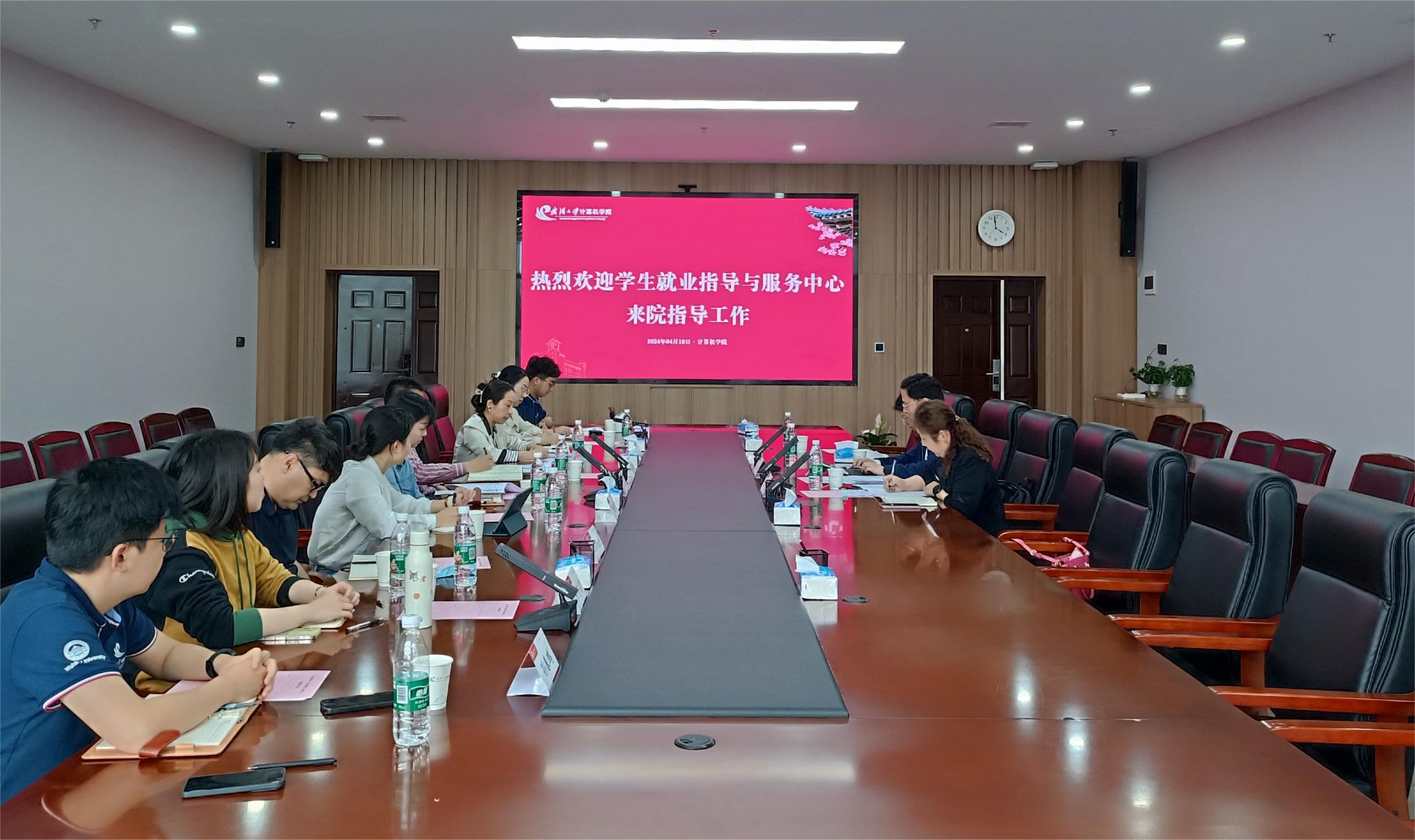 4月19日下午,学校就业中心副主任朱炜、就业指导与咨询办公室主任王丹、就业信息与市场开拓办公室主任周琪一行来我院开展调研交流。学院党委副书记高卫松、金娟,研究生工作办公室主任潘艳、本科生工作办公室主任于雅梦以及各年级辅导员参加会议。