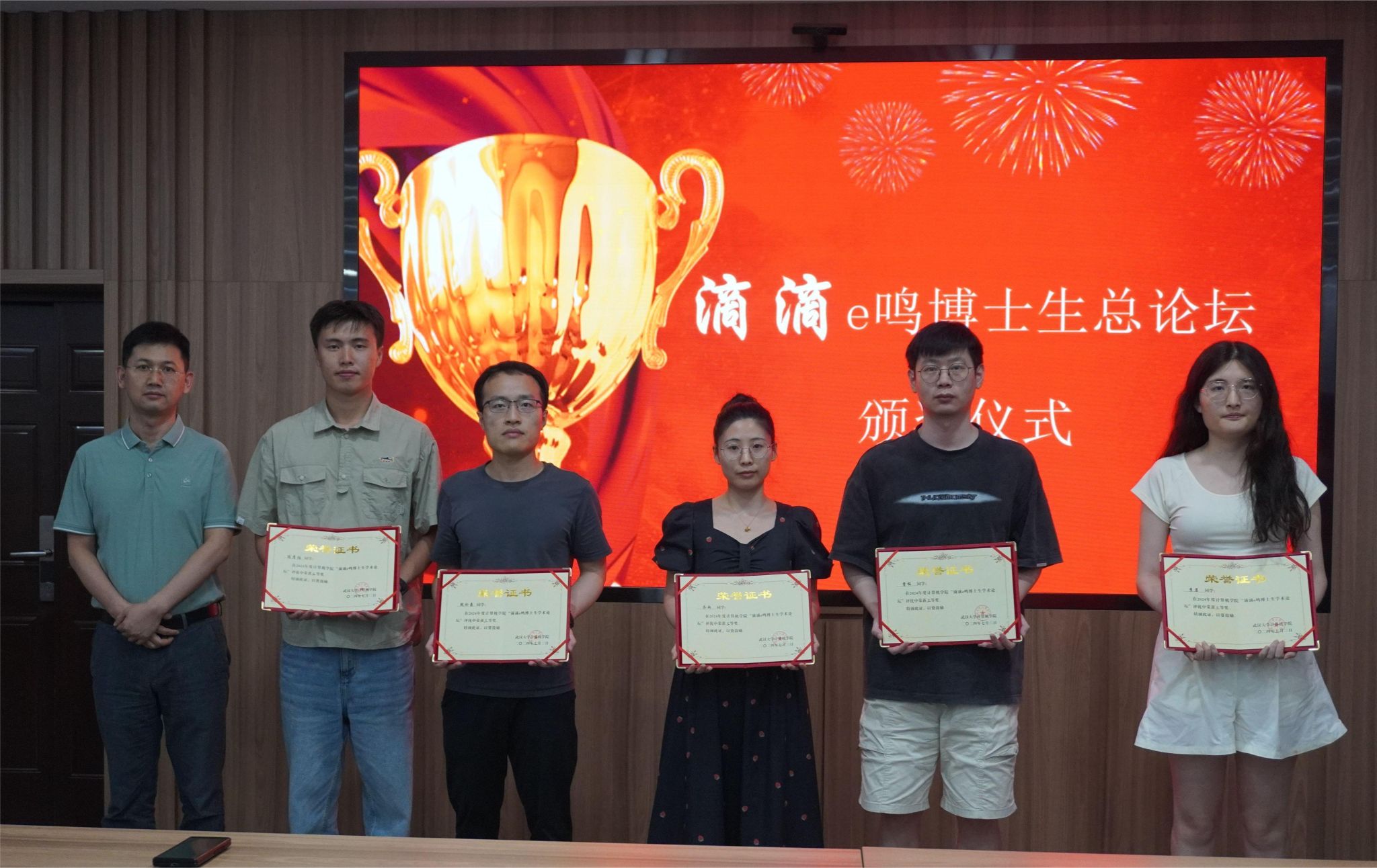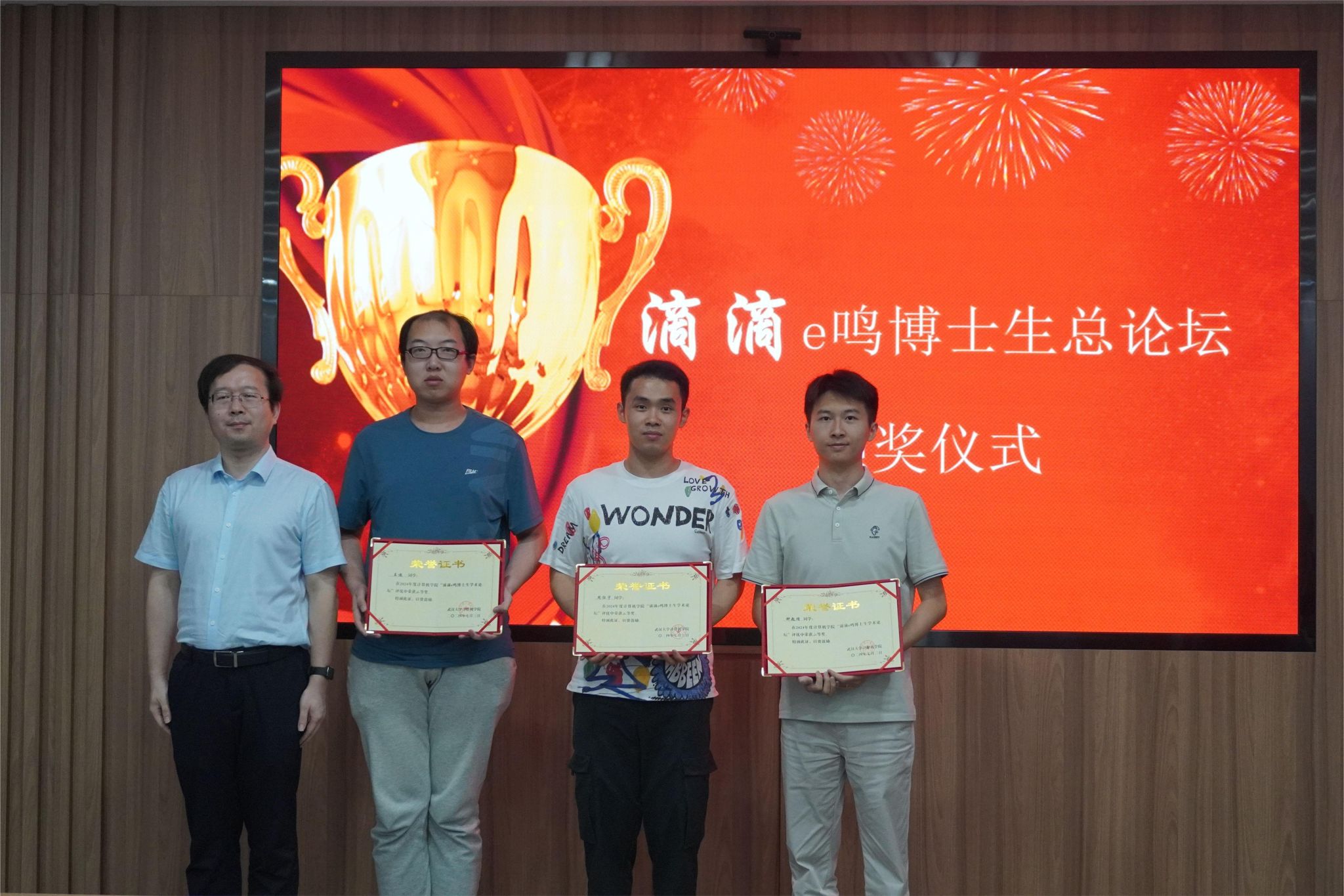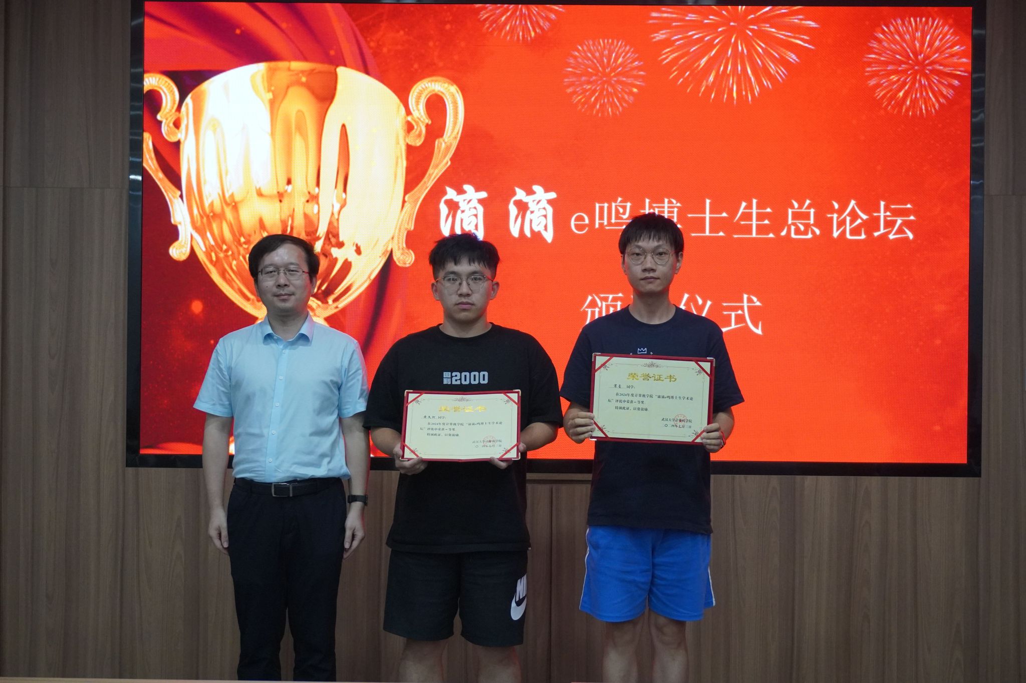 高卫松主持颁奖仪式,程大钊、杜博先后为获奖博士生颁奖。