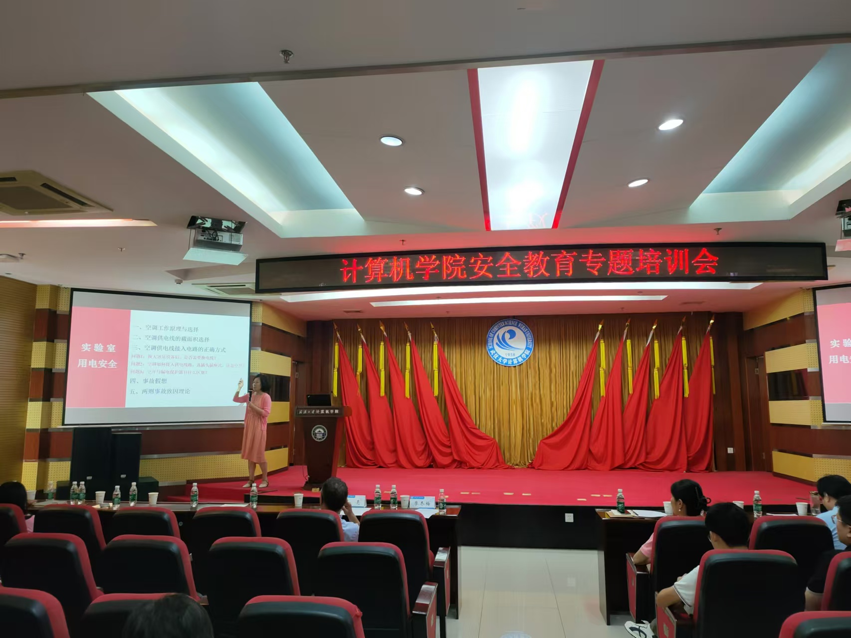 保卫部副部长马亮担任主讲嘉宾,以“学习贯彻党的二十届三中全会精神,强化安全意识,筑牢安全防线”为主题,聚焦实验室用电安全、网络安全、交通安全及消防安全等开展培训。全体院领导班子、教职工200余人参加了培训会。