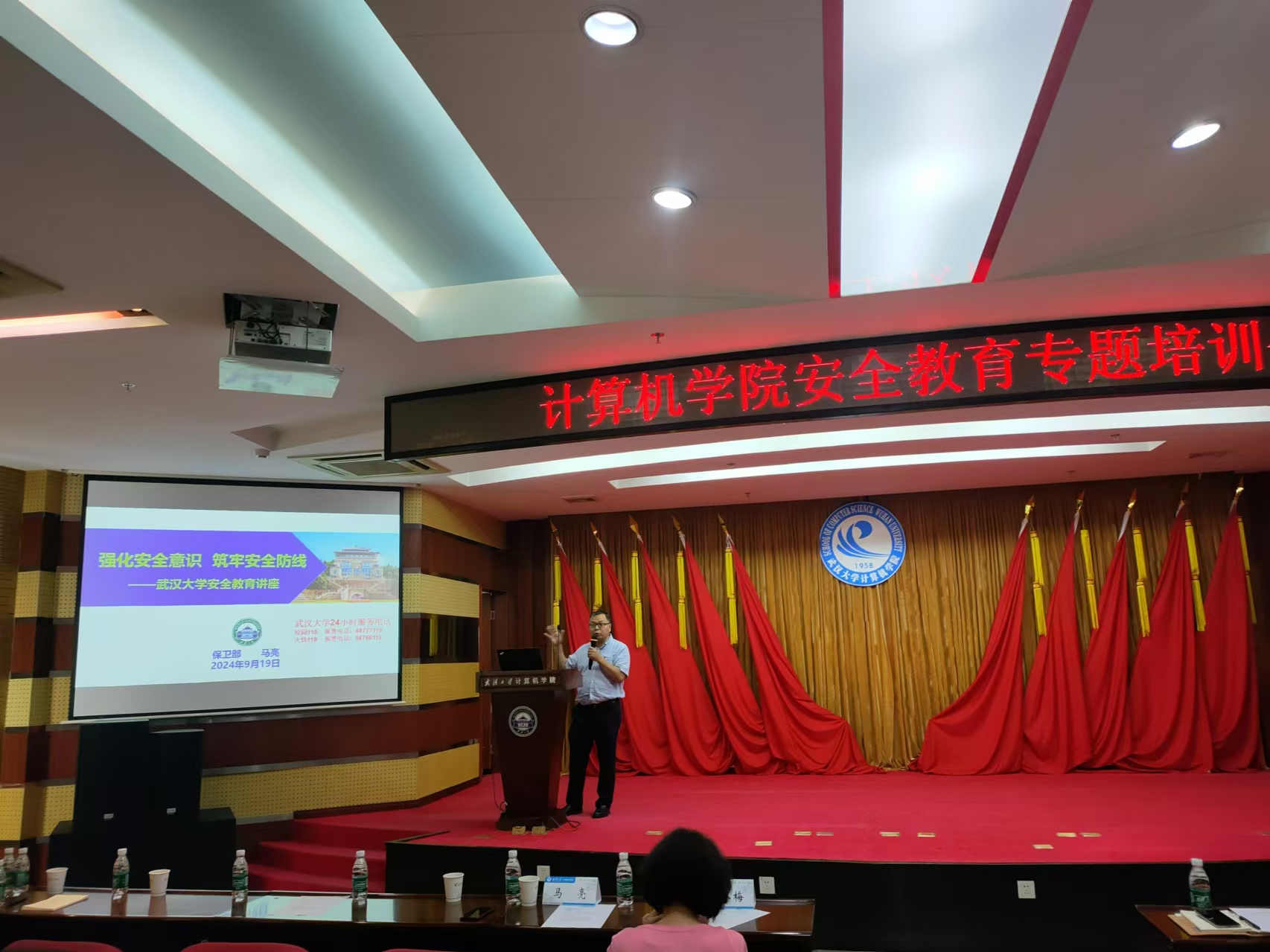 马亮副部长以“强化安全意识、筑牢安全防线”为主题,结合当前校园安全形势,重点就消防安全、交通安全、电信网络诈骗开展安全培训,强调了安全工作对于学校高质量发展的重要性。