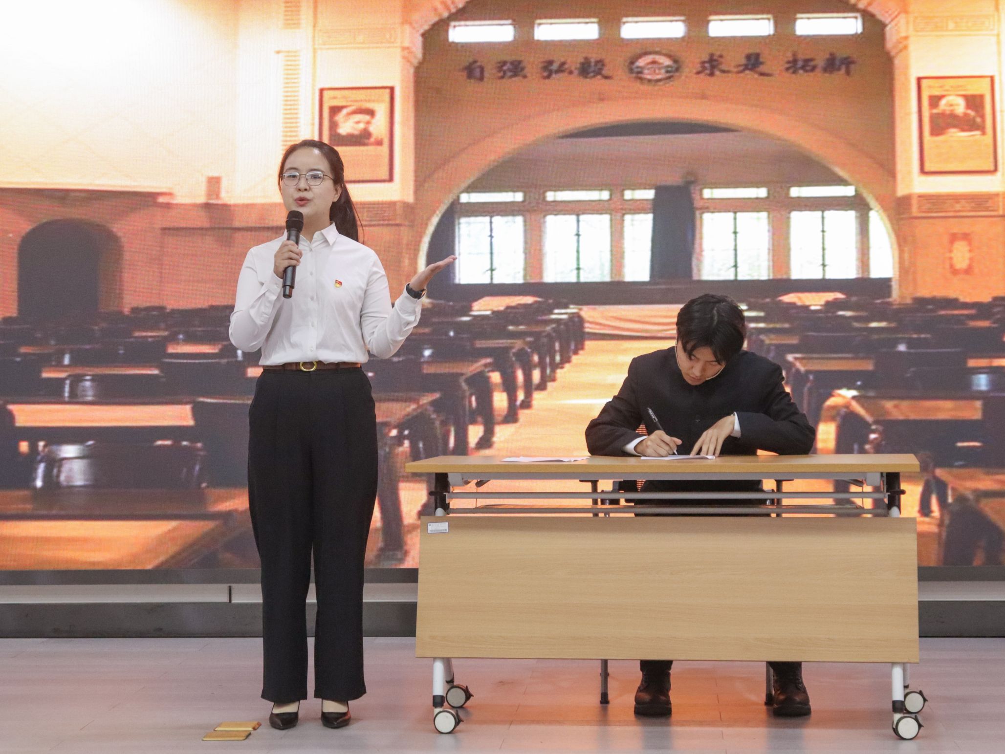 党委副书记高卫松致辞。高书记指出,本次研究生党支部风采大赛旨在提升党支部建设质量,展现研究生党员的风采,希望通过这次比赛,激励研究生党员坚定信仰、信念和信心,提升政治素养和综合能力,为实现中华民族伟大复兴的中国梦贡献力量。最后,高书记祝愿大赛圆满成功,希望各参赛队伍展现最佳风采,向新中国成立75周年华诞献礼。