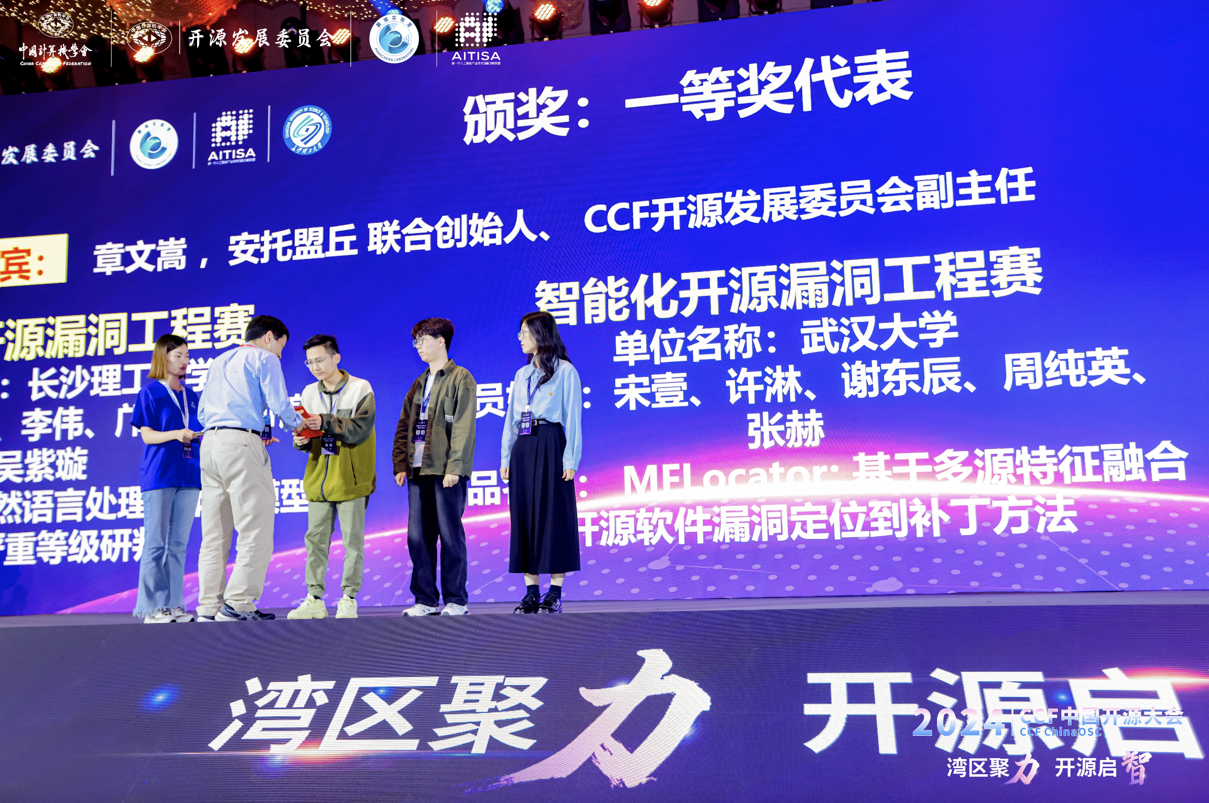 2023级博士生周纯英,2024级硕士生许淋、谢东辰和2022级特软班本科生张赫,获奖作品名为《MFLocator: 基于多源特征融合的开源软件漏洞定位到补丁方法》。随着经济社会的发展,软件安全已经成为国家安全的重要组成部分,而开源软件中存在的漏洞严重威胁着现代软件系统的安全。及时准确地定位到漏洞相关的补丁,对于修复漏洞至关重要。该作品研究并实现MFLocator这一自动化漏洞定位到补丁技术,通过提取漏洞与提交的语义特征和非语义特征,基于不同的负样本比例对三个排序模型进行训练,并采取基于投票的策略得到最终的补丁相关性排序,以期定位到给定漏洞的真实补丁。实验结果表明,MFLocator方法的有效性在多个主流指标上均高于该领域现有代表性方法。
